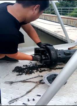 在檢修過(guò)程中,機(jī)修人員不怕臟、不嫌臭,直接下手將堵塞物、葉輪纏繞物一一清理出來(lái),完美詮釋了污水人“一絲不茍、精益求精”的工作作風(fēng)和優(yōu)良傳統(tǒng)。正是有這么一群可愛(ài)的人,在平凡的崗位默默奉獻(xiàn),才保證了污水系統(tǒng)各個(gè)環(huán)節(jié)設(shè)備設(shè)施的正常運(yùn)行,進(jìn)而保證了出水水質(zhì)的穩(wěn)定達(dá)標(biāo)(張曉偉)。