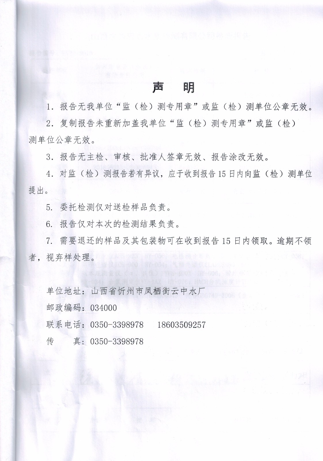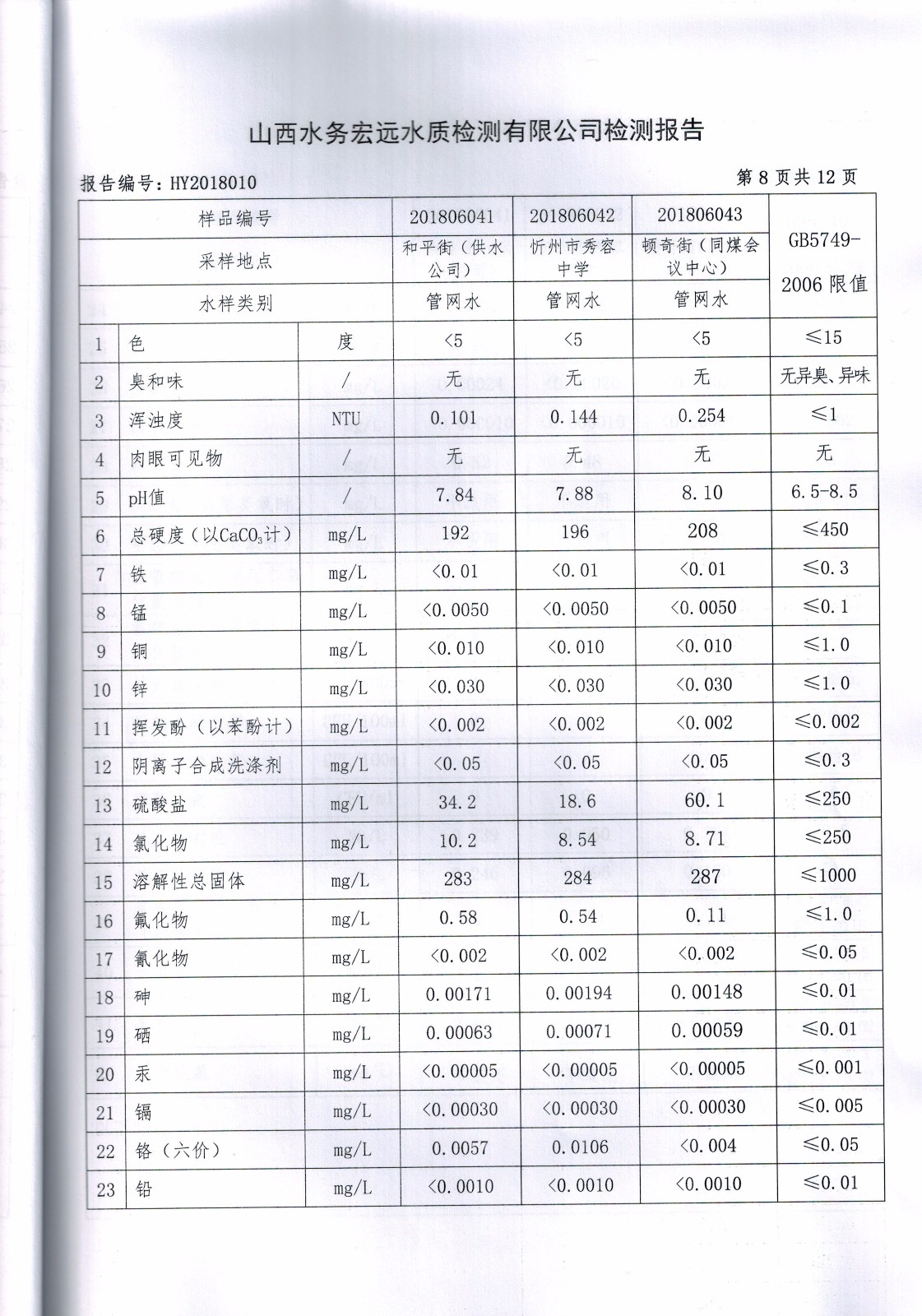忻州城區(qū)公共供水水源水、出廠水、管網(wǎng)水、管網(wǎng)末梢水2018年6月份水質信息公示